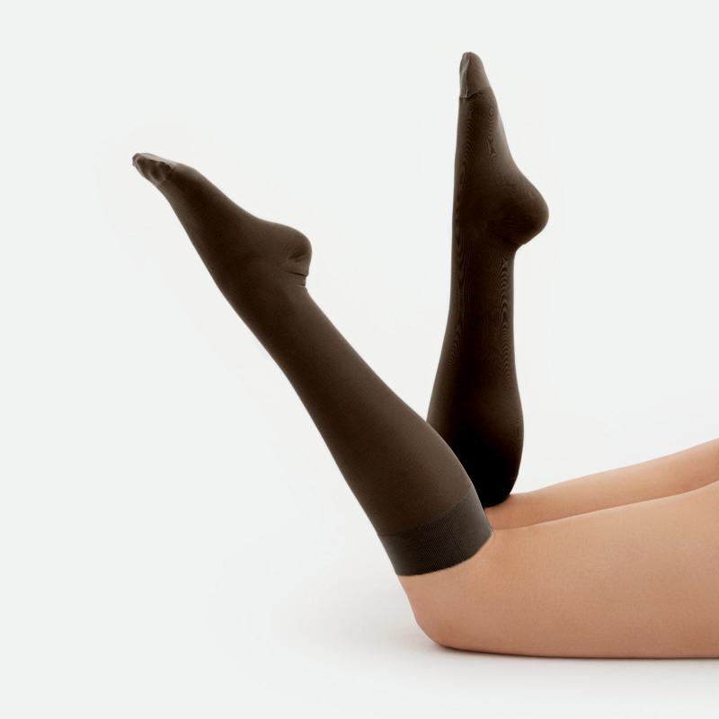 - Благородный полуматовый оттенок полотна маскирует видимые дефекты вен и делает женский образ более элегантным.