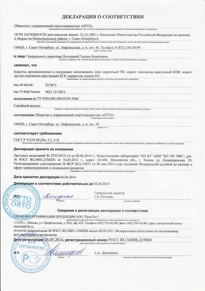 Корсет КПК-110 ORTO грудо-пояснично-крестцовый, совмещенный